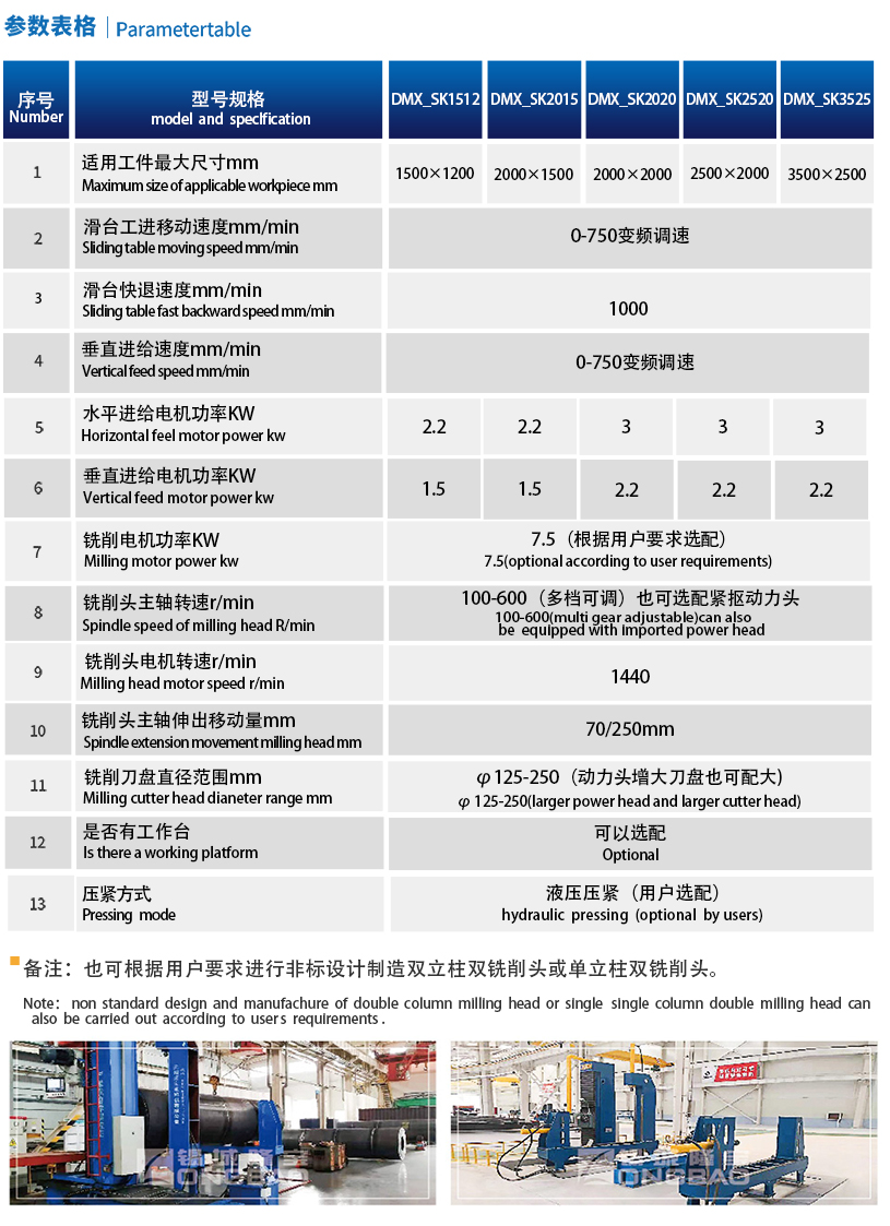 垂直進(jìn)給電機(jī)功率KW:1.5 1.5 2.2 2.2 2.2